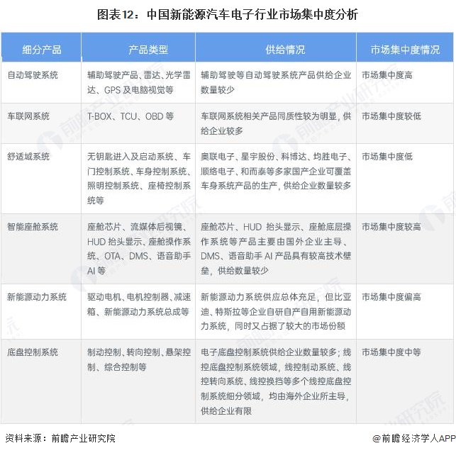 从市场集中度角度来看,自动驾驶系统、智能座舱系统、新能源动力系统等新能源汽车电子细分领域,市场集中度较高;车联网系统、舒适域系统等领域市场集中度则相对较低。