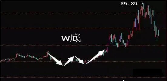 K线形态呈现W形态,这是下跌趋势结束前出现的反弹,然后会再度下跌,在前次低点附近再次出现反转,如果成交量有效的放大,并且以大阳线突破颈线,那么趋势将展开: