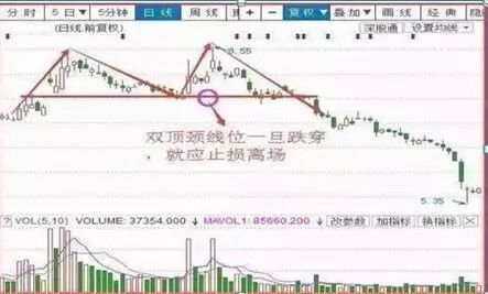 如上图,双顶形成后,跌穿颈线就要果断出局,以免后期更加被动。