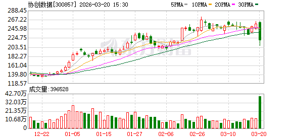 另一家被传闻波及的是A股算力巨头协创数据(300857.SZ),该公司午后股价突然跳水,一度20cm跌停,截至收盘跌近15%,报收219.25元,总市值758.87亿元。