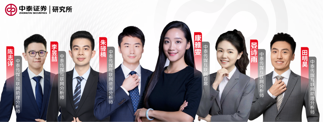 本订阅号为中泰证券传媒互联网团队设立的。本订阅号不是中泰证券传媒互联网团队研究报告的发布平台,所载的资料均摘自中泰证券研究所已经发布的研究报告或对已经发布报告的后续解读。若因报告的摘编而产生的歧义,应以报告发布当日的完整内容为准。请注意,本资料仅代表报告发布当日的判断,相关的研究观点可根据中泰证券后续发布的研究报告在不发出通知的情形下作出更改,本订阅号不承担更新推送信息或另行通知义务,后续更新信息请以中泰证券正式发布的研究报告为准。