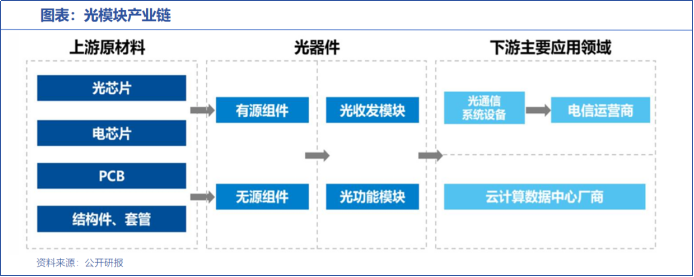 中际旭创、新易盛则在天孚通信的下游,将光器件和光电芯片及结构件整合形成光模块。