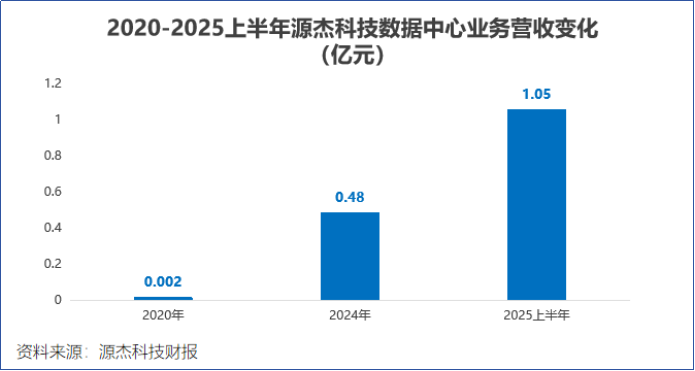 2020年,公司数据中心业务类收入仅2万元,2024年增长至0.48亿元。2025上半年再次攀登至1.05亿元,同比增长1034%。