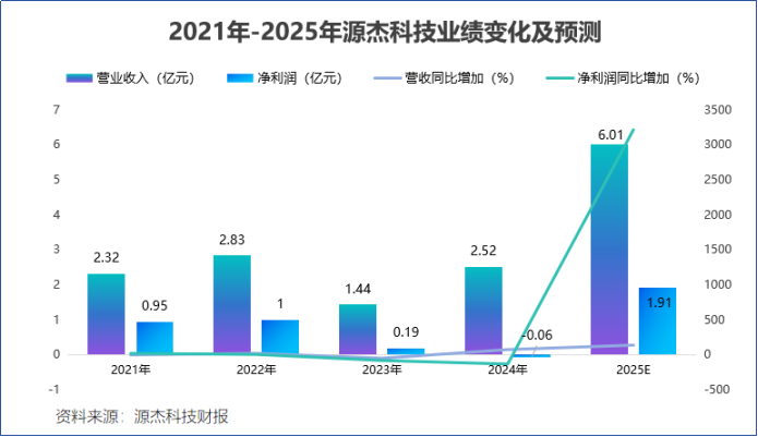 2月底,源杰科技一纸业绩预告震撼问世,公司除了营收增速高达138.5%之外,净利润更是比去年同期增长了3212%。其净利润数额达到1.91亿,一举扭亏为盈,改变此前业绩疲态。