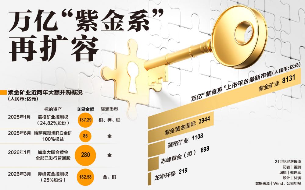 从2025年投入137亿元溢价收购藏格矿业控制权,到今年1月斥资约280亿元并购加拿大矿企联合黄金,再到这次182亿元入主赤峰黄金,近两年,紫金矿业的外部并购开始更多将目光投向上市公司,并购规模也是动辄百亿元起步。