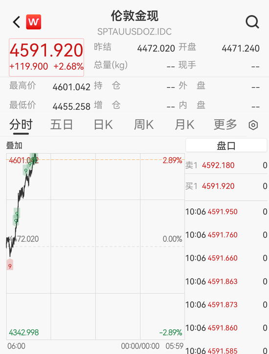 3月25日,现货黄金持续上涨,盘中连续突破4500美元、4600美元两大关口,截至10:07,涨近3%回落至4590美元/盎司上方,年初至今涨幅达6.15%。现货白银涨3.44%报73.729美元/盎司。