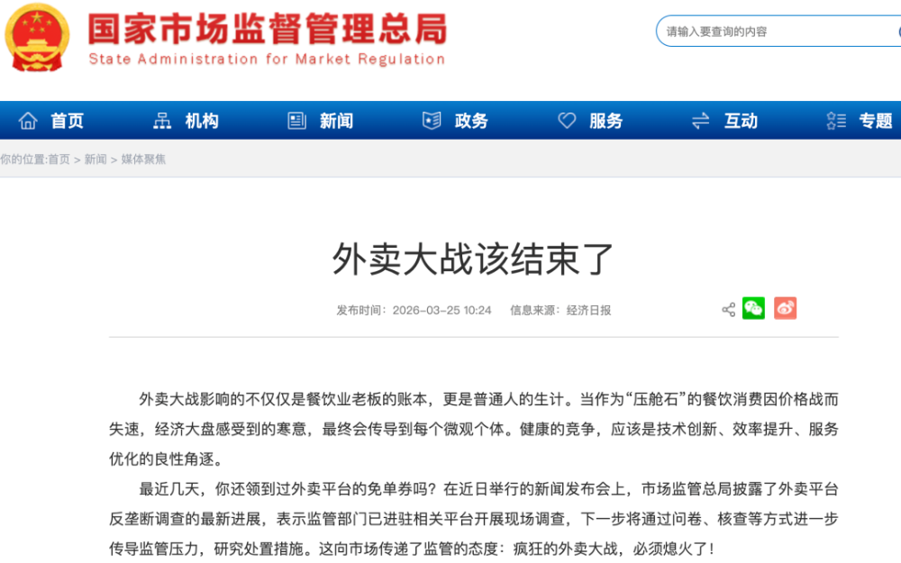 港股方面,恒生科技指数午后涨幅一度扩大至2%,科网股集体拉升,美团涨近12%,阿里巴巴涨超5%。国家市场监管总局今日转发经济日报文章《外卖大战该结束了》。文章称,监管及时叫停外卖大战,其实是在维护经济正常运行,避免恶性竞争打乱经济回暖节奏,让企业及劳动者有正常的生活和收入。