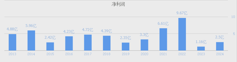 不过公司的净利润却是呈周期性波动,2022年净利润创出新高9.67亿后,2023年开始暴跌至1.16亿,净利润跌幅高达88%;