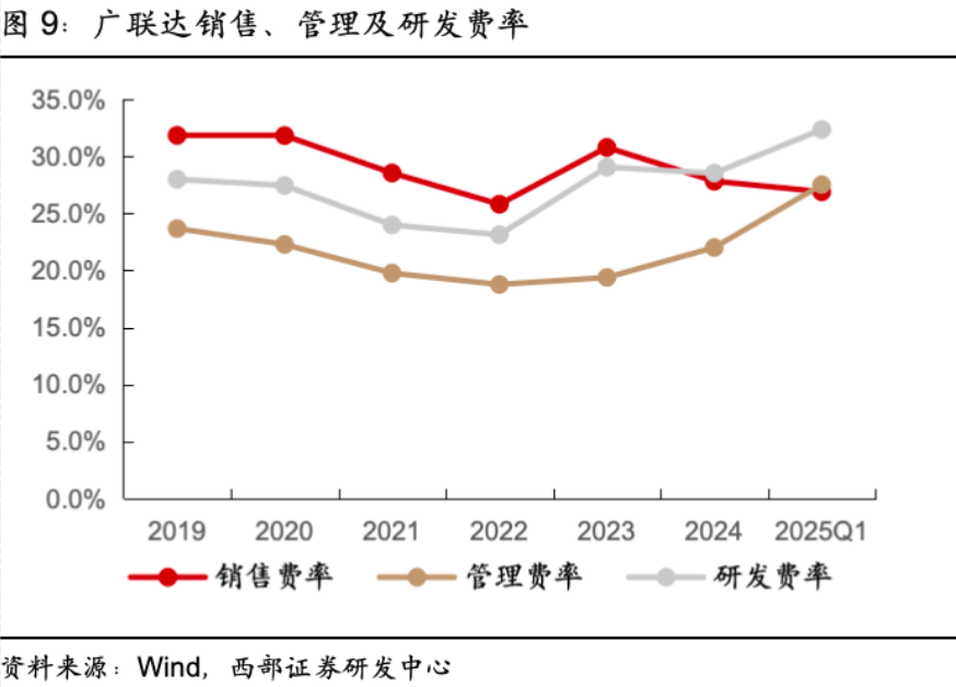 其中公司的销售费用率常年保持在25%-30%,非常高;研发费用率常年保持在25%-28%,表明公司在研发投入非常大。