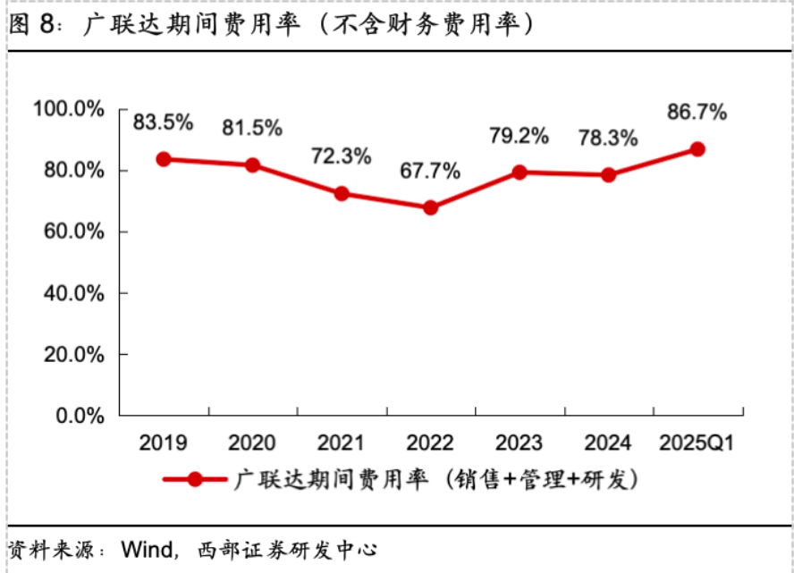 主要是公司的期间费用率非常高,常年保持在70%-80%。