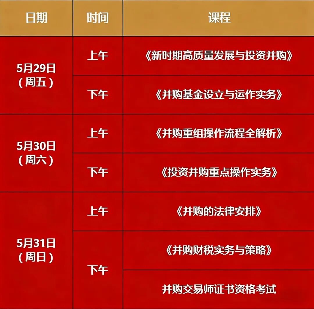 ▲《并购交易师》证书5月29-31日(周五-周日)