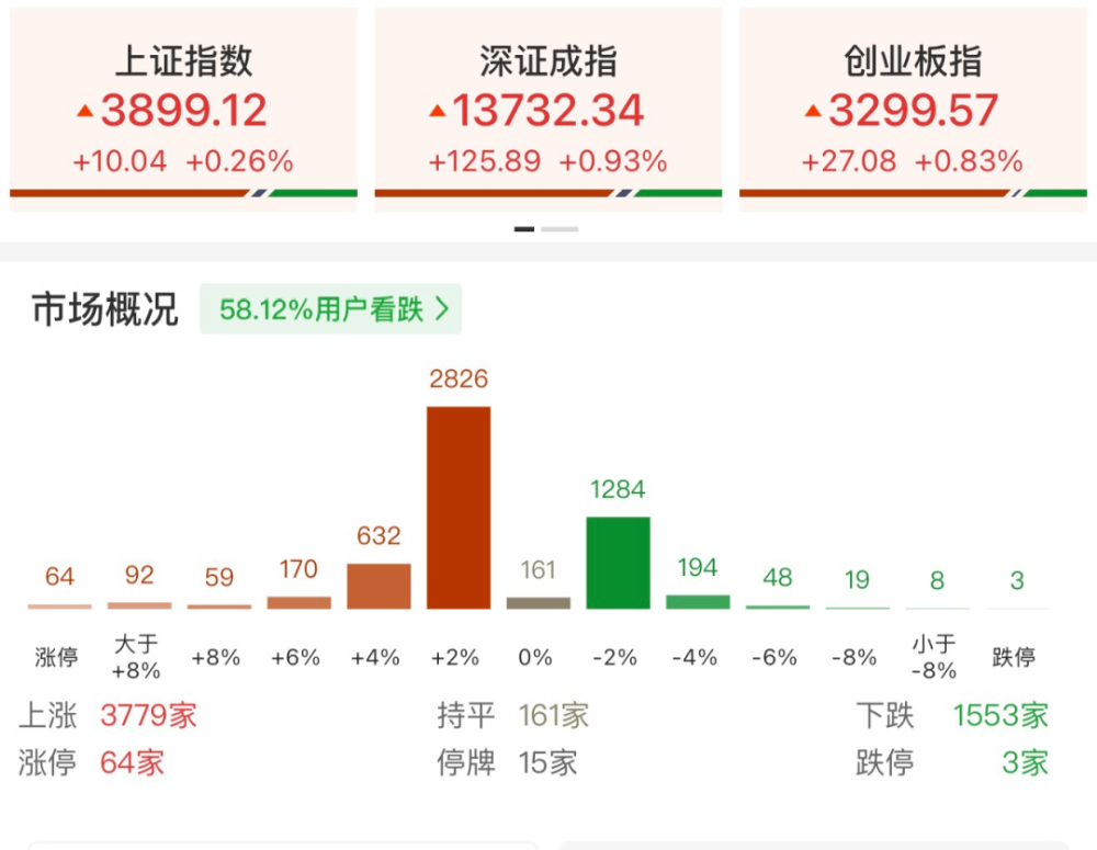 盘面上热点快速轮动,全市场超3700只个股上涨。