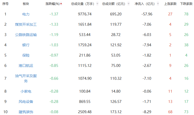 下跌方面,绿电方向多股下挫,辽宁能源跌停,节能风电、海力风电大跌。