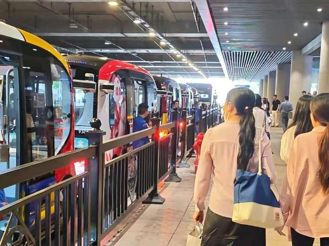 下午,记者来到广州公交集团,一辆辆无人驾驶小巴整齐排列,不少市民正在有序排队上车,体验智慧公交带来的便捷出行。广州公交集团自动驾驶项目筹备组市场运营副总监徐聚贤在采访中分享,很多乘客都称赞小巴很有科技感,也很有亲近感,深受亲子、学生群体的欢迎。