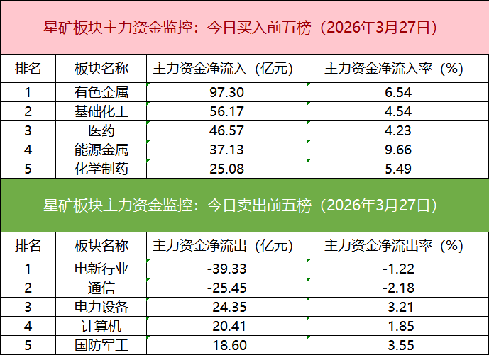 从主力板块资金监控数据来看,有色金属板块主力资金净流入居首。