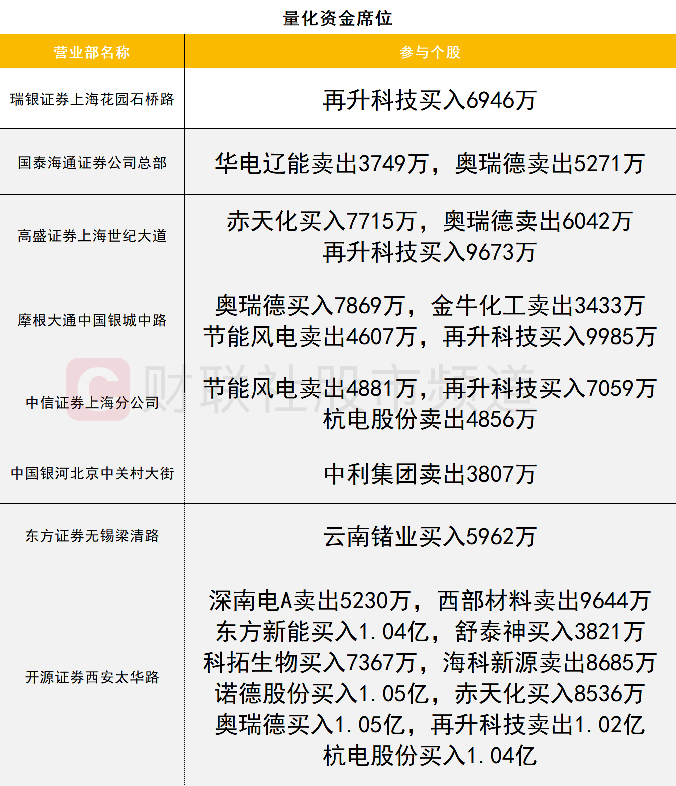 量化资金活跃度较高,东方新能获一家量化(开源证券西安太华路)买入1.04亿。