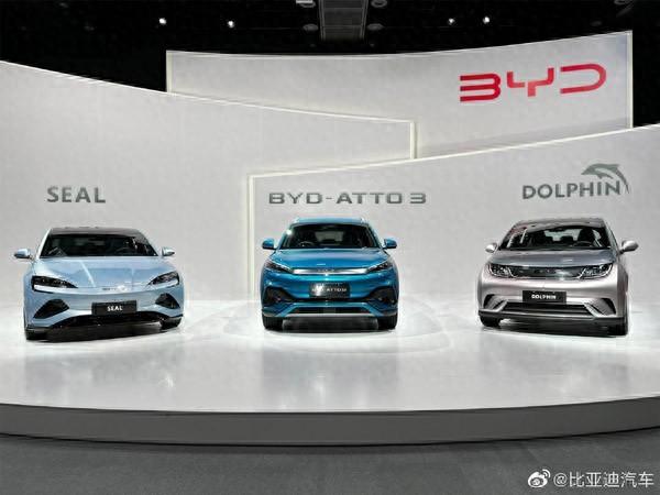 比亚迪在日本先期推出的三款车型:海豹、海豚和ATTO 3 比亚迪