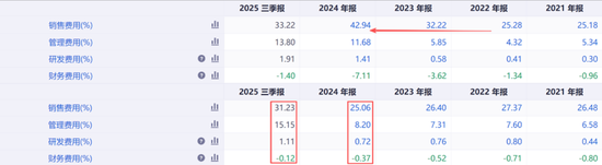 让酒鬼酒雪上加霜的是其高得惊人的销售费用率,该指标从2022年的25.28%暴涨至2024年的42.94%,2025年虽稍有回落但仍然处于较高水平。尤其是在营收近乎腰斩的背景下,高昂的营销开支吞噬了所有毛利,最终导致净利率跌至-1.29%,由盈转亏。背后的原因也很直观,酒鬼酒为了维持渠道动销和品牌声浪,不得不持续投入渠道返利、广告、品鉴会等,但收效甚微,反而陷入越卖越亏的恶性循环。