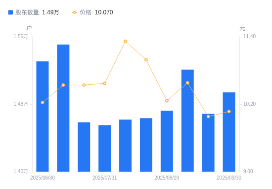 近一年(2024年9月30日至2025年9月30日),春雪食品A股股东户数从1.62万户,减低至1.49万户,降幅7.59%,区间股价上涨23.11%。