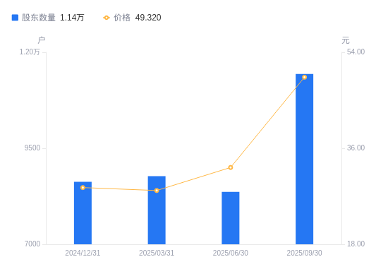 近一年(2024年9月30日至2025年9月30日),鸿日达A股股东户数从8683户,增加至1.14万户,增幅31.68%,区间股价上涨107.40%。