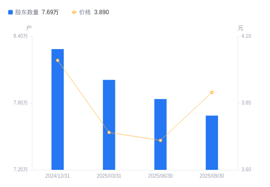 近一年(2024年9月30日至2025年9月30日),山西焦化A股股东户数从8.5万户,减低至7.69万户,降幅9.57%,区间股价下跌5.12%。