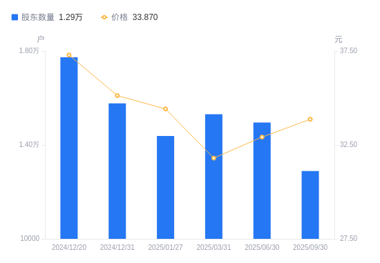 近一年(2024年9月30日至2025年9月30日),魅视科技A股股东户数从1.17万户,增加至1.29万户,增幅10.04%,区间股价上涨33.35%。