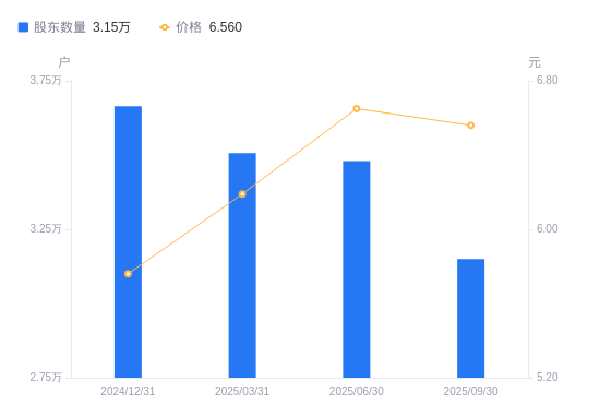 近一年(2024年9月30日至2025年9月30日),海欣股份A股股东户数从3.19万户,减低至3.15万户,降幅1.31%,区间股价上涨18.63%。