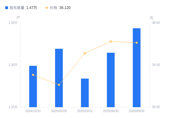 近一年(2024年9月30日至2025年9月30日),九华旅游A股股东户数从1.22万户,增加至1.47万户,增幅21.00%,区间股价上涨2.58%。