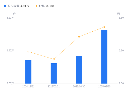 近一年(2024年9月30日至2025年9月30日),尔康制药A股股东户数从4.36万户,增加至4.91万户,增幅12.72%,区间股价上涨34.13%。