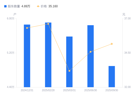 近一年(2024年9月30日至2025年9月30日),中科信息A股股东户数从5.64万户,减低至4.89万户,降幅13.16%,区间股价上涨36.28%。