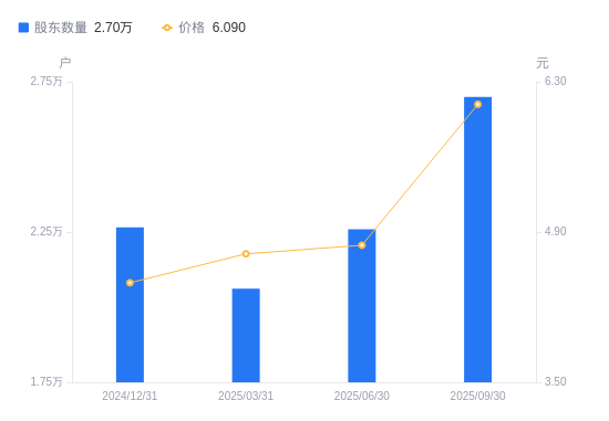 近一年(2024年9月30日至2025年9月30日),汇通集团A股股东户数从2.38万户,增加至2.7万户,增幅13.22%,区间股价上涨37.56%。