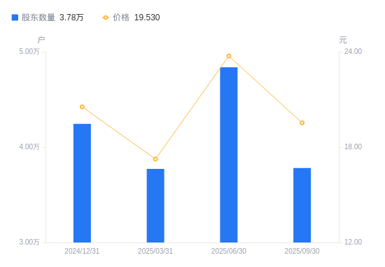 近一年(2024年9月30日至2025年9月30日),新晨科技A股股东户数从3.11万户,增加至3.78万户,增幅21.58%,区间股价上涨41.32%。