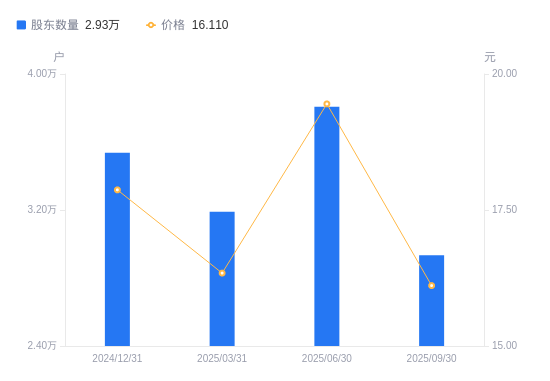 近一年(2024年9月30日至2025年9月30日),安达维尔A股股东户数从3.53万户,减低至2.93万户,降幅17.00%,区间股价下跌1.89%。