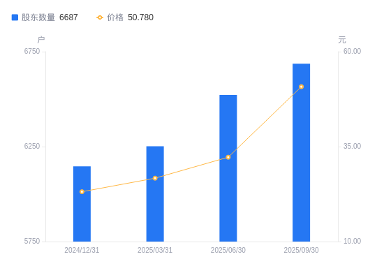 近一年(2024年9月30日至2025年9月30日),南模生物A股股东户数从6405户,增加至6687户,增幅4.40%,区间股价上涨117.19%。