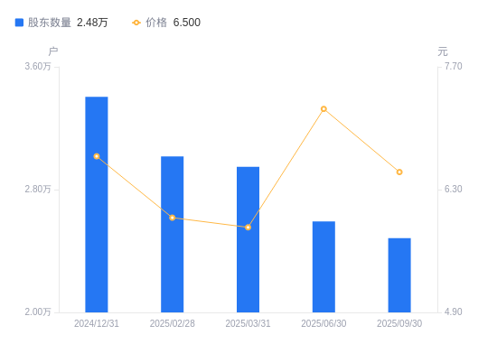 近一年(2024年9月30日至2025年9月30日),安道麦AA股股东户数从2.73万户,减低至2.48万户,降幅9.00%,区间股价上涨23.81%。