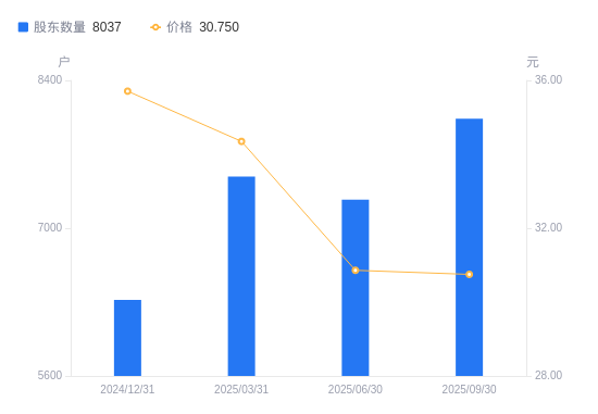 10月30日消息,数据显示,截至2025年9月30日,英诺特A股股东总户数为8037户,较上期(2025年6月30日)增加768户,增幅10.57%。公司最新A股总股本为1.37亿股,其中流通A股6933.68万股,户均持有流通A股数量为8627.2股,较上期减少839.12股,降幅8.86%;户均持流通A股市值26.53万元,较上期减少2.68万元,降幅9.19%。