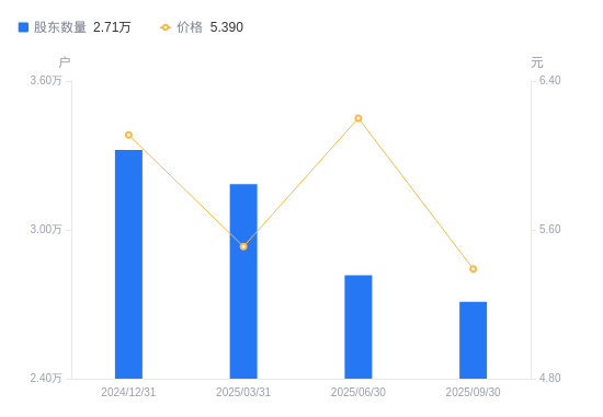 近一年(2024年9月30日至2025年9月30日),万林物流A股股东户数从1.6万户,增加至2.71万户,增幅68.95%,区间股价上涨19.51%。