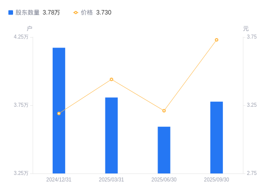 近一年(2024年9月30日至2025年9月30日),建设机械A股股东户数从4.25万户,减低至3.78万户,降幅11.15%,区间股价上涨40.75%。
