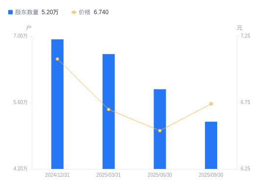 近一年(2024年9月30日至2025年9月30日),中国出版A股股东户数从6.84万户,减低至5.2万户,降幅24.09%,区间股价上涨2.93%。