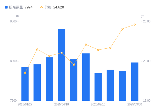 近一年(2024年9月30日至2025年9月30日),晶华微A股股东户数从6750户,增加至7974户,增幅18.13%,区间股价上涨66.46%。