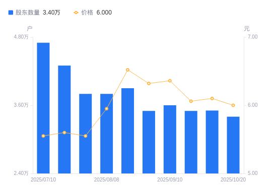 近一年(2024年11月20日至2025年10月20日),海利得A股股东户数从3.3万户,增加至3.4万户,增幅3.03%,区间股价上涨41.34%。