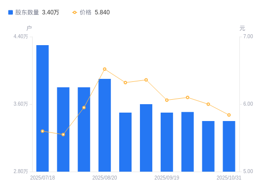 近一年(2024年11月20日至2025年10月31日),海利得A股股东户数从3.3万户,增加至3.4万户,增幅3.03%,区间股价上涨37.57%。
