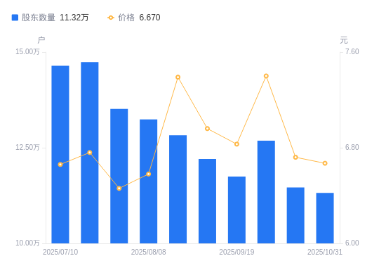 近一年(2024年10月31日至2025年10月20日),天汽模A股股东户数从6.61万户,增加至11.46万户,增幅73.45%,区间股价上涨47.05%。