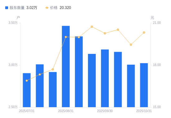 近一年(2024年10月31日至2025年10月31日),美亚光电A股股东户数从2.81万户,增加至3.02万户,增幅7.44%,区间股价上涨35.02%。