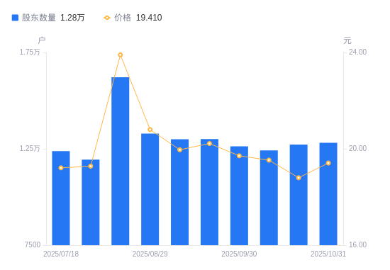 近一年(2024年12月31日至2025年10月31日),英特科技A股股东户数从1.42万户,减低至1.28万户,降幅9.52%,区间股价上涨9.64%。