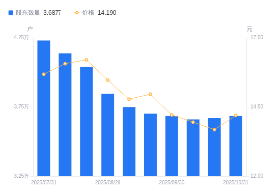 近一年(2024年11月20日至2025年10月31日),朗玛信息A股股东户数从3.96万户,减低至3.68万户,降幅7.08%,区间股价下跌4.54%。