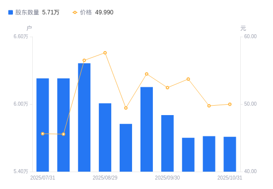 近一年(2024年11月8日至2025年10月31日),高新发展A股股东户数从8.97万户,减低至5.71万户,降幅36.34%,区间股价下跌28.40%。