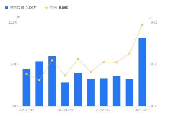 近一年(2024年12月31日至2025年10月31日),顶固集创A股股东户数从9937户,增加至1.06万户,增幅6.92%,区间股价上涨51.03%。