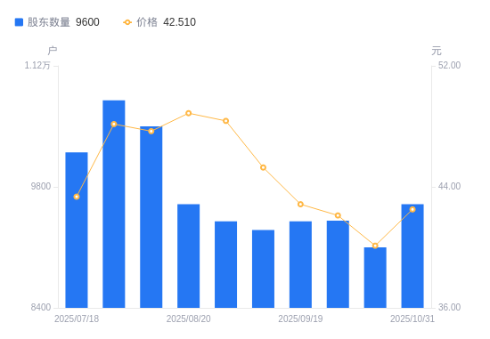近一年(2024年10月31日至2025年10月31日),亚香股份A股股东户数从5800户,增加至9600户,增幅65.52%,区间股价上涨124.46%。