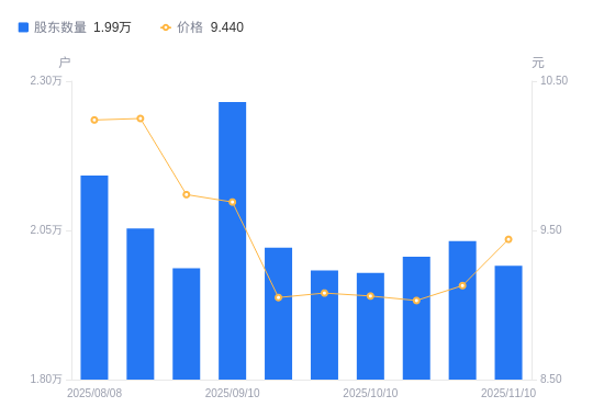 近一年(2024年11月20日至2025年11月10日),吉大通信A股股东户数从2.47万户,减低至1.99万户,降幅19.45%,区间股价上涨4.13%。